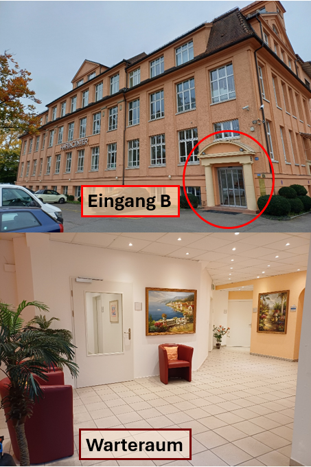 Der Eingang B ist derjenige, den du bei deinem Erstbesuch benützt. Er befindet sich auf der rechten Gebäudeseite des Hafencenters.